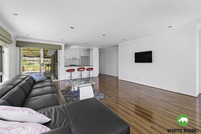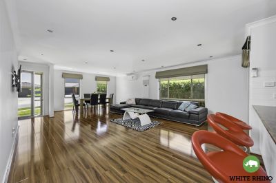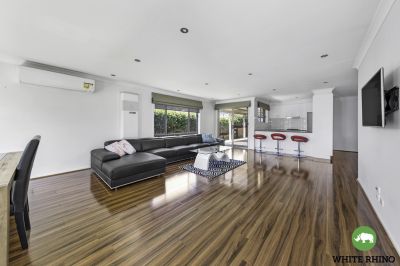 The heart of the home is the expansive open-plan living, dining, and family areas, where rich hardwood floors create a sense of sophistication and warmth. Natural light floods the space, enhancing the welcoming atmosphere and making it the perfect place to relax or entertain. The stylish kitchen, centrally located for convenience, boasts modern appliances, ample bench space, and sleek cabinetry-perfect for preparing meals while staying connected with family and guests.