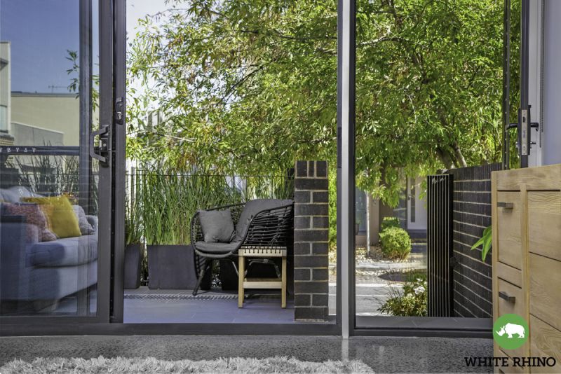 Step inside via a charming tree-lined alleyway and be welcomed onto a large front balcony, perfect for year-round entertaining. The heart of the home features a spacious living area, finished with polished concrete floors that flow into the well-appointed dining space and chef's kitchen. Sleek stone benchtops, fully electric SMEG induction appliances, ample storage and an additional balcony complete this level.