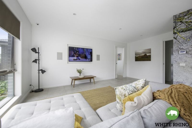 The heart of the home is the large open-plan living area, seamlessly integrating a state-of-the-art kitchen & dining space. With direct access to the alfresco entertaining area through sliding doors, the transition between indoor & outdoor living is effortless. The enclosed rumpus/media room provides an additional space for relaxation, offering a perfect spot for unwinding or enjoying segregated living.