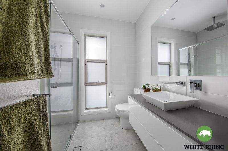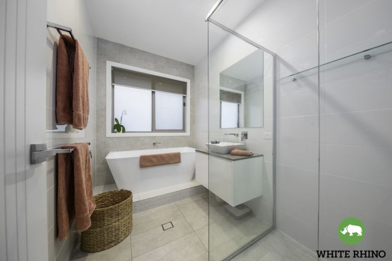 The generously sized master bedroom is a private retreat, complete with a walk-in robe & a deluxe ensuite. The ensuite is truly indulgent, featuring a stylish vanity, double mixers, shower seat & a large rainfall shower. The three additional bedrooms are all spacious, fitted with built-in robes & share a modern, ultra-luxe bathroom, complete with a spacious shower, bathtub & vanity.