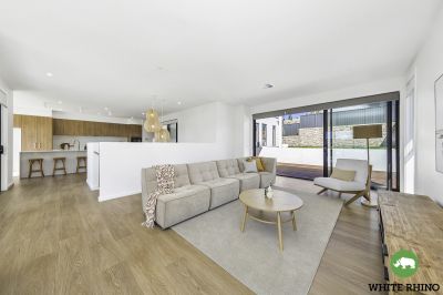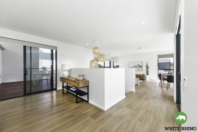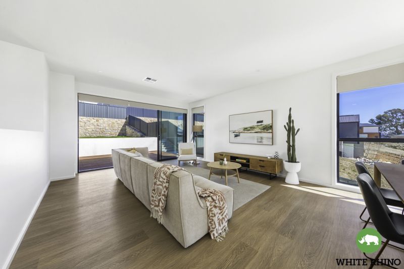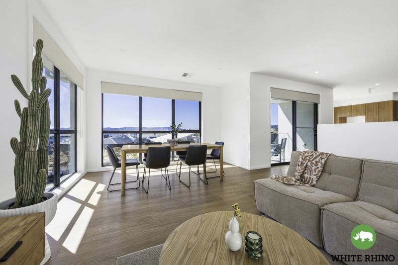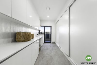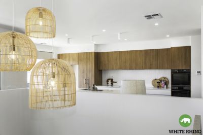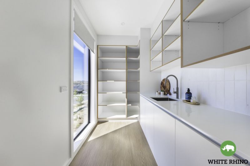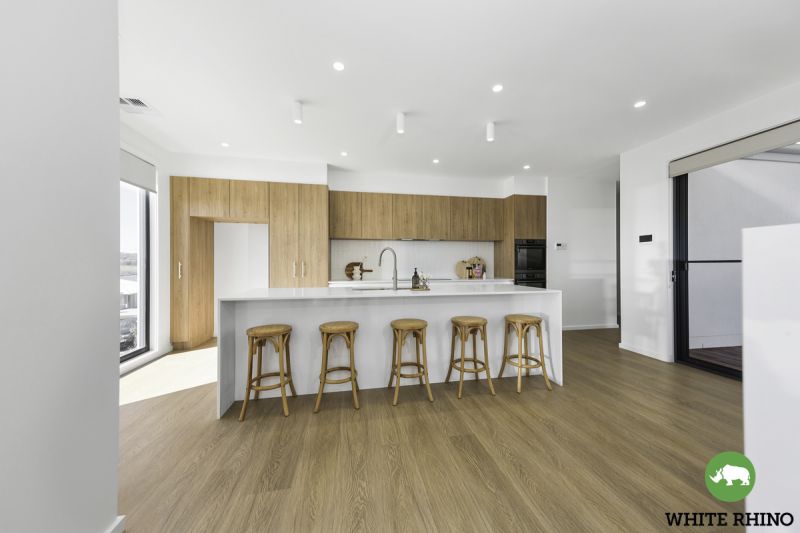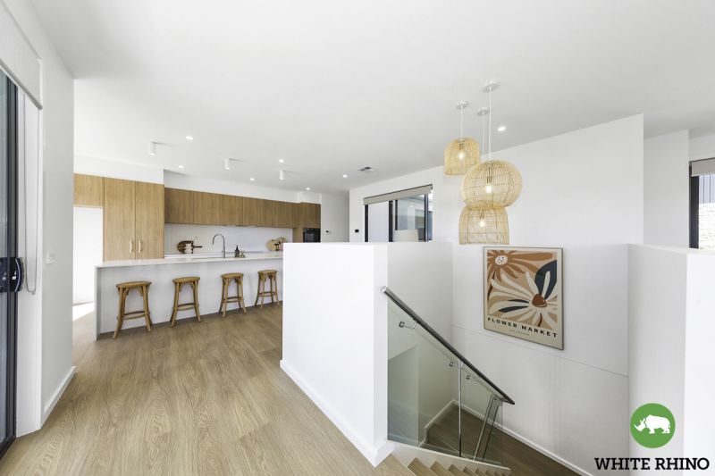 Venture upstairs to embrace the heart of the home - a luxurious open-plan living and dining area adorned with expansive windows that flood the space with natural light and offer access to the balcony. The gourmet kitchen takes centre stage, showcasing tiled splashbacks and an elegant breakfast bar, illuminated by pendant lights and completed by a generous walk-in pantry, providing ample storage space for all your cooking essentials.