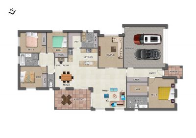 The main bedroom is a true retreat, offering a luxurious ensuite and a spacious his and hers walk-in robe. The remaining three bedrooms are all generously proportioned, each with built-in wardrobes and serviced by a sleek, modern bathroom showcasing quality fittings and stylish finishes. A separate rumpus room adds versatility for families, while a study nook provides the perfect space to work from home.