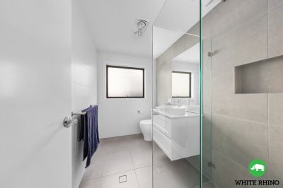 Upstairs is a private retreat designed for comfort. The master suite impresses with its scale, offering a walk in wardrobe and a luxurious ensuite with a double floating vanity. On this level, two additional bedrooms, each with built-in robes, are complemented by a family bathroom, separate powder room and an living space. A balcony off the living room captures natural light and provides a quiet spot to unwind.