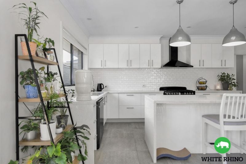 At the heart of the home lies a spectacular open plan living zone, perfectly designed for modern family life. The showstopping kitchen stands as the centrepiece, with chic white cabinetry, striking feature lighting and stylish tiled splashbacks. Abundant storage and expansive stone benchtops provide both practicality and luxury, while the spacious island with breakfast bar and premium 900mm freestanding oven create an inviting space for cooking and connection.