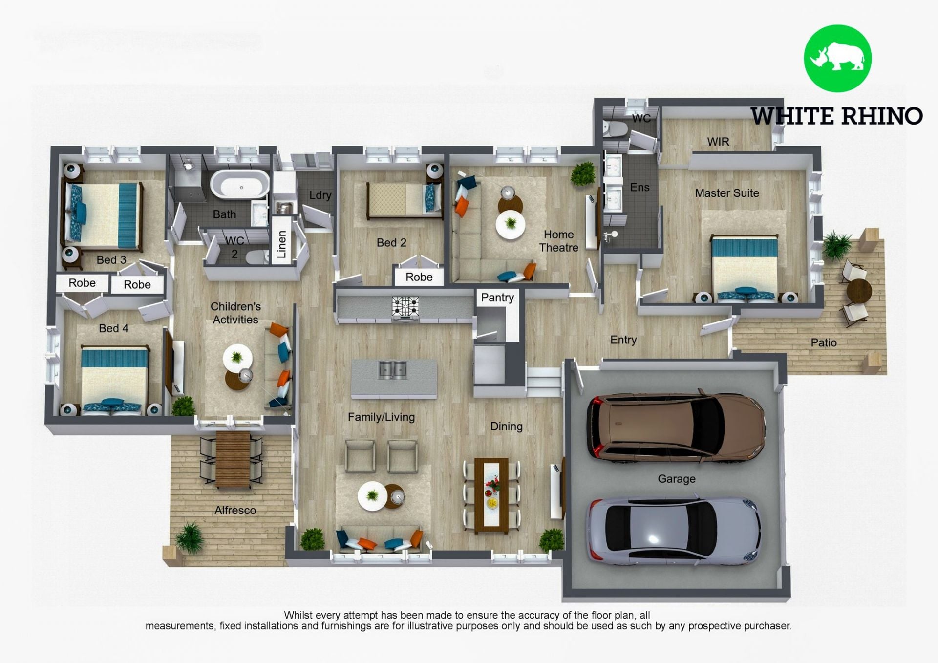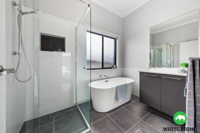 The master suite is privately located to the front of the home and offers a true parents retreat complete with a walk in robe and stylish ensuite, featuring double floating vanities. Three additional bedrooms are generously sized and include built in robes, serviced by a well-appointed main bathroom with separate bath, shower and WC for added convenience.