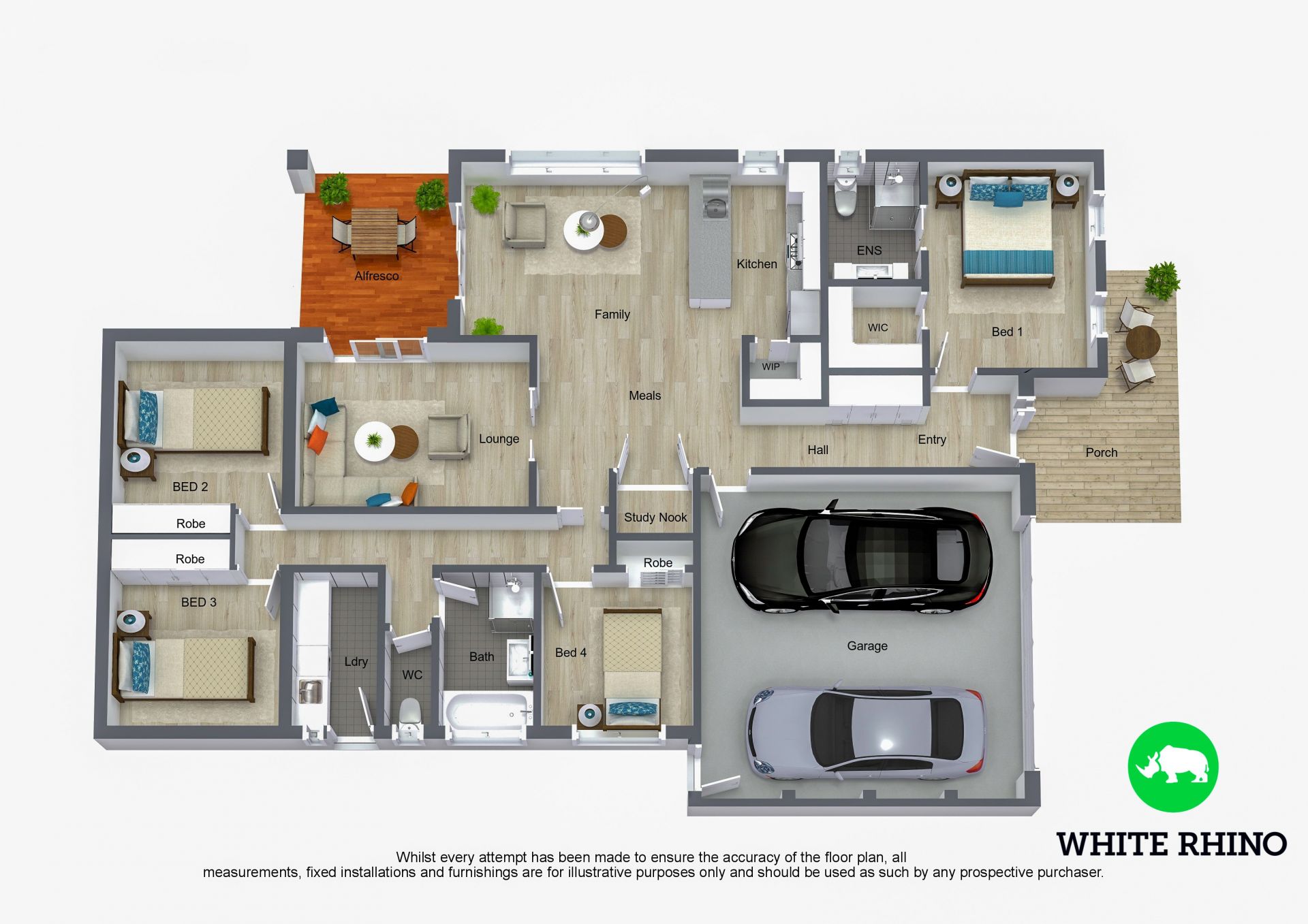 This home ensures ample space and privacy for everyone, with four generously sized bedrooms. The master suite, thoughtfully separated for maximum peace and privacy, offers a walk in wardrobe and a well appointed ensuite with a shower and vanity, making it the ideal retreat at the end of the day. Each room features built in wardrobes with mirrored doors, providing plenty of storage. The modern family bathroom serves the three secondary bedrooms with both practicality and style.