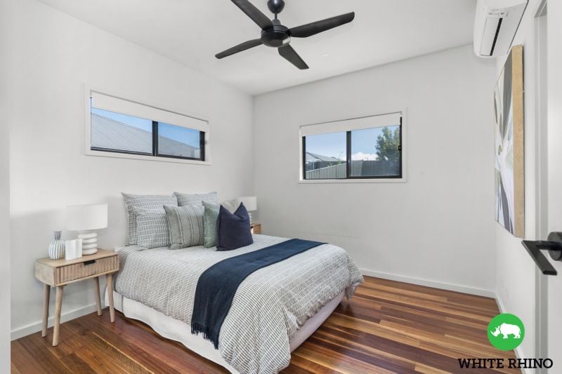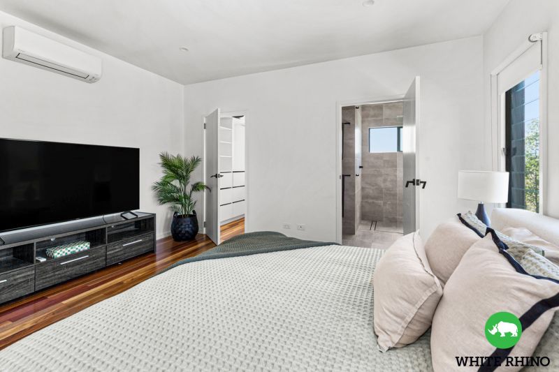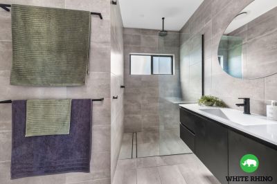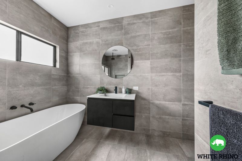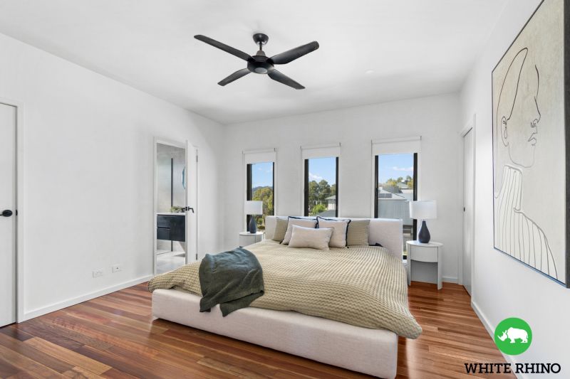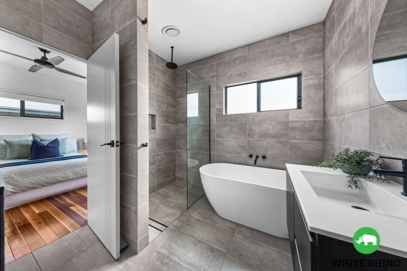 The master suite is a private sanctuary, thoughtfully separated from the remaining bedrooms and complete with a spacious walk-in robe, ceiling fan and a beautifully appointed fully tiled ensuite. Three additional bedrooms are all generously proportioned, each featuring built-in robes and ceiling fans, with three enjoying direct access to the covered balcony, an inviting space to savour morning coffee while taking in the breathtaking outlook. The main bathroom continues the home's modern aesthetic, showcasing floor-to-ceiling tiles, a freestanding bath, rainfall shower and sleek floating vanity.