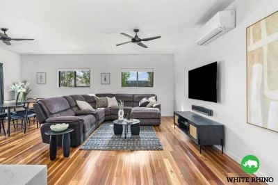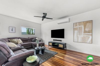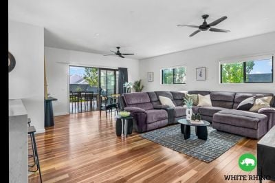 The light filled open plan living and dining zones are enhanced by ceiling fans and extend seamlessly through double sliding doors to the covered alfresco area. Outdoors, a spacious entertainer's deck overlooks the expansive, private rear yard, an ideal setting for family living, children at play or hosting guests. The oversized, level lawn also provides ample space for caravan parking or boat storage, reinforcing the home's outstanding versatility.
